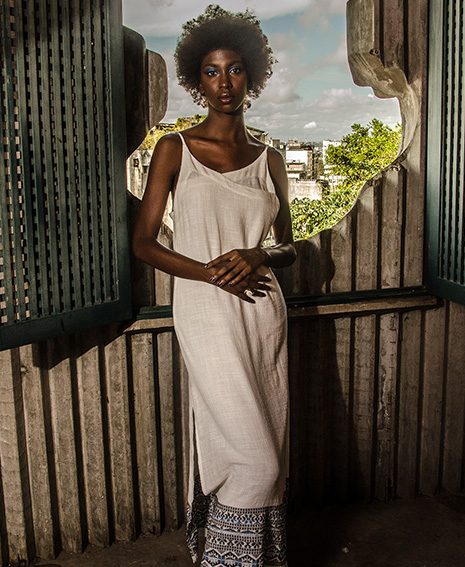 A marca, há treze anos, combina as novas tecnologias têxteis e as silhuetas contemporâneas aos elementos clássicos do vestir africano. Assim, (re)cria uma forma de representação das heranças africanas na paisagem da moda brasileira.