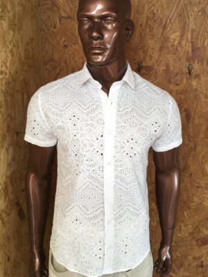 Camisa de cassa bordada (laise) 100% algodão, modelagem slim da Katuka .